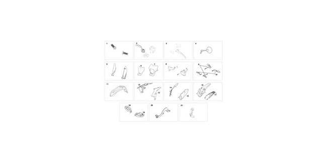RahmenSchwingeFederbeinLenksäuleGabelVorderradHinterradBremse VorneBremse HinterradKühlerTank EinlassAuspuffLenker und AmaturenPlastikteile (Vorne)Plastikteile (Hinten)Kabelbaum XEFBroschüren - AufkleberKurbelwellegehäuseKupplungs & ZündungsdeckelZylinderVentileNockenwelleKurbelwelleKupplungWasserpumpeöl PumpeölfilterSchaltungSchalt GabelGetriebeStartmotorZahnrad E-StartSchwungradEmpfohlene Ersatzteile 4-takt (1)Empfohlene Ersatzteile 4-takt (2)