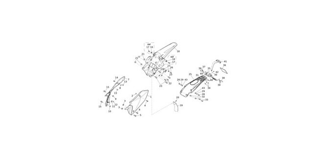 FrameSwingarmShock AbsorberSteering platesFront forkFront wheelRear wheelFront BrakeRear BrakeRadiatorsFuel tank / Fuel pumpAir IntakeExhaustHandlebar - ControlsFront BodyworkTank BodyworkRear BodyworkWiring XEFWiring XXFManuals - DecalsCrankcaseCrankcase CoversCylinder - CylinderheadValvesDistributionCrankshaftClutchWater pumpOil PumpOil FilterGearleverGear forksGearboxStarting motorGear E-startFlywheelSuggested Spare Parts 4-Stroke (1)Suggested Spare Parts 4-Stroke (2)